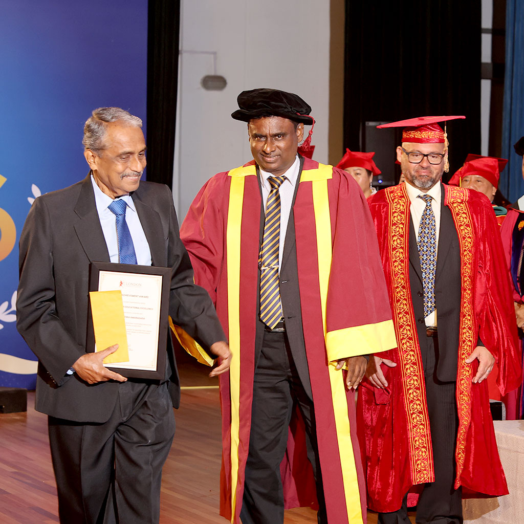 AIBT Campus proudly honored veteran educator K. H. Amaradasa with a Lifetime Achievement Award during the prestigious AIBT Campus Graduation Ceremony 2026, held at the iconic BMICH Main Hall, Colombo. The award recognized his outstanding dedication to education and his remarkable contribution to shaping generations of students in Sri Lanka.